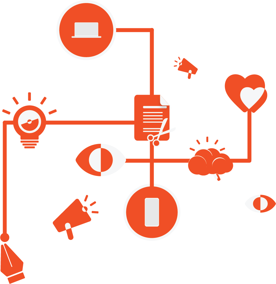 Faites circuler le message de votre marque, en ligne et hors ligne, avec des histoires écrites et visuelles soigneusement élaborées.